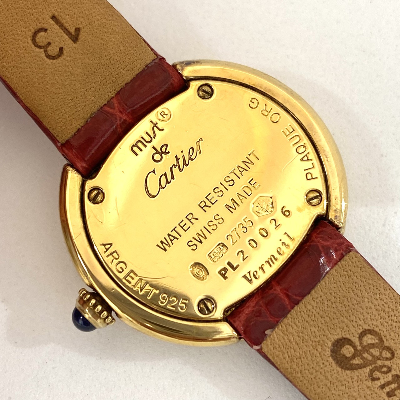 査定コメント ケースの2時位置にわずかな打痕があります。カルティエ純正ベルト、バックル有り。動作は良好です。現在学芸大学東口店にて展示販売中です。