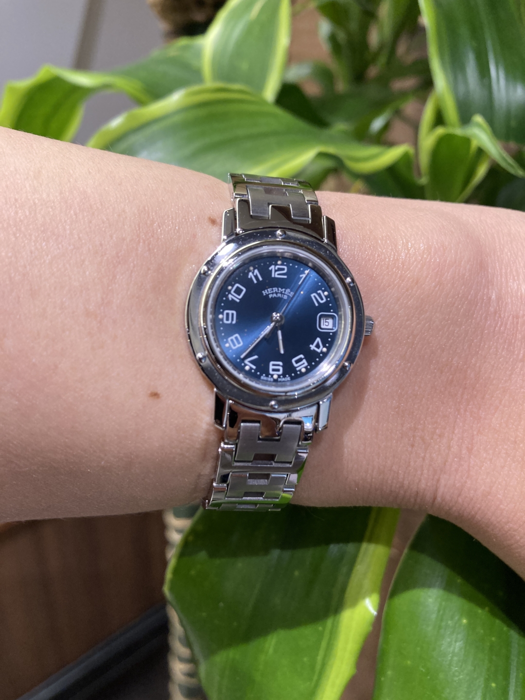 エルメスのクリッパー、ブルー文字盤です。